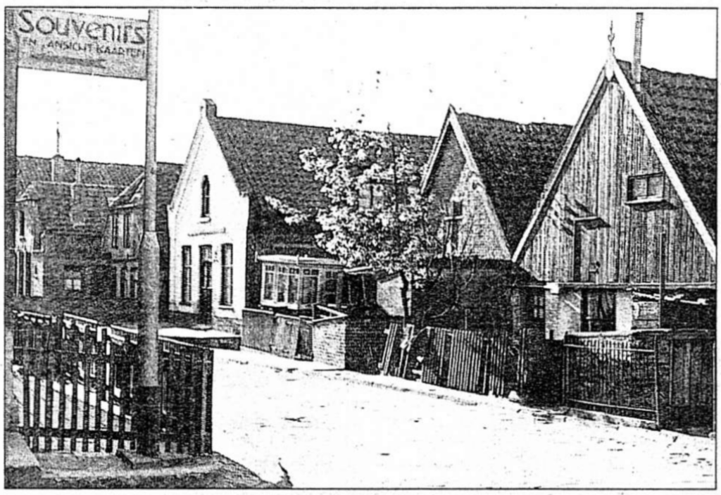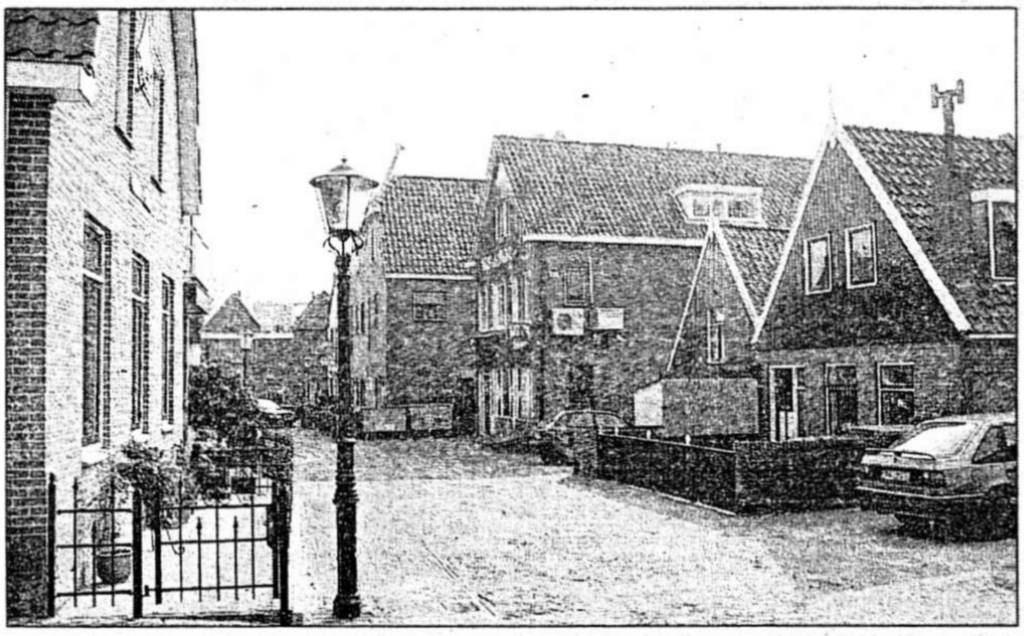 Lange tijd, in ieder geval sinds 1890, was deze straat één van de twee invalswegen, je zou ook kunnen zeggen uitvalswegen van Urk. De hoogte naast de uitspanning van Frans en Dinie Brouwer (‘Wabu’) gaf namelijk toegang naar de boothaven, waar de boten van en naar Kampen en Enkhuizen afmeerden. Je kon dat (en kunt nog steeds) dat gedeelte van de Westhaven slechts op twee manieren bereiken. Via deze hoogte of via de hoogte nabij de havenmeesterswoning. De ‘Ostera’, die enige tijd de dienst op Amsterdam onderhield, meerde op een andere plaats, als we ons nog goed herinneren was dat de Dormakade. Niet vreemd dus dat we op het uithangbord links een wervende tekst zien voor souvenirs en ansichtkaarten. In het pand rechts op de foto woonde Willem Kroeze met zijn vrouw Willempje. Willem was een broer van Jan Kroeze, op Urk wel bekend. Nu wordt het inmiddels vernieuwde pand, Wijk 1-63, aan de zuidzijde bewoond door Greta Oost en aan de noordzijde door Fedde Veenstra. In het pand daarnaast woonden, toen deze foto werd gemaakt, Jacob Nentjes en zijn vrouw Nanne van Inte. Zij waren de ouders van onder andere Dubbele en Willem Nentjes. Dubbele was vishandelaar en Willem was ijsverkoper. Zijn ijstent (hij had trouwens ook een ijskar op luchtbanden) staat hier voor de ouderlijke woning op Wijk 1-64. In onze jeugd kostten de ijsjes respectievelijk vijf en tien cent. Over de activiteiten van de familie Brouwer schreven wij eerder. In de kelder onder de door hen gerunde uitspanning werd de basis gelegd voor het Urker limonadewezen. Later verhuisde het expanderende bedrijf, eerst naar het Urker Industrieterrein, nog weer later naar Kampen. Een experiment met het vervaardigen van wijn mislukte. Het vat met rode bessen, waaruit de grand cru had moeten ontstaan, ontplofte voortijdig. Dat was in de oorlogsjaren en het verhaal is van broer Iede uit Terneuzen. Naast de familie Brouwer woonden Klaas van Veen en Marretje Hoefnagel met hun gezin op Wijk 1-66. Egbert Korf dreef op nummer 67 zijn zuivelhandel en kruideniersbedrijf. Egbert was ooit Indië-ganger en vermaard lid van de vereniging ‘Dindua’, een vrolijk en veelzijdig man. De ijstent verdween en het pand daarachter herbergt nu de boutige ‘Unique’, gerund door Jeanette van Middendorp, in lederwaren. Frans Brouwer, de uitbater van de ‘Wabu’, was een uitstekende voordrager. Tijdens het declameren van een gedicht gewijd aan de bijbelse koning Saul en dat eindigde met de woorden ,,Mijn speer!” maakte hij zo’n suggestief gebaar, dat toehoorders achterom keken waar dat wapen, trillend in het achterschot van een oud Overijssels kerkje, terecht was gekomen. Tot de volgende keer!