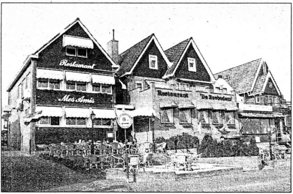 Op onze wandeling over de havenkant zijn we nu op de boothaven aangekomen. Dit havengedeelte werd als open haven aangelegd in 1819, de oudste haven van Urk. De oostelijke havenkom werd in 1834 afgesloten met een dam. In 1878 werd de haven uitgediept tot twee meter onder volzee. De komst van de bootdienst in 1890 maakte de bouw van een aanlegsteiger noodzakelijk. Ook verrees toen naast de werfboet van Roos een eenvoudig kantoorgebouwtje, op Urk bekend als ‘’t boot-ussien’. Het gebouwtje staat er nog steeds en herbergt nu een grillroom met de exotische naam ‘Hawaii’, net niet op de foto te zien. Hier gaan we van start en als we de hoogte oversteken zien we eerst een statig winkelpand oprijzen. ‘Kruidenierswaren en Aanverwante Artikelen’ staat er op het gevelbord te lezen. De weduwe Alb. Brouwer dreef er een winkel. Later kwamen daar pensiongasten bij en nog weer later werd er in de kelder onder het huis de grondslag gelegd voor de limonadefabriek Brouwer. Ooit was de folklorist Cruys Voorbergh hier te gast. Hij at er zijn lievelingstoetjes, griesmeelpudding met abrikozen. Nu serveert restaurant ‘Mes Amis’ er culinaire hoogstandjes. De huizen ernaast zijn inmiddels afgebroken en op die plek staat nu restaurant ‘De Zeebodem’. Het gebouw uiterst rechts op de foto was een van de weinige hotels op het eiland. Eerst zwaaide Hein van Woudenberg er de scepter, daarna nam Klaas Schraal het hotel over, samen met zijn vrouw Dirkje Ras. De naam veranderde: ‘Hotel Café Restaurant De Verwachting’. Zoon Meindert Schraal en zijn vrouw Geertje Korf zetten de zaak voort. Nu is het een Chinees restaurant: ‘Hai-Li’. Op het pleintje voor deze huizen en gebouwen verzamelde zich vroeger het publiek om de aankomst van de boten gade te slaan. Zij stelden zich dan op achter de zogenaamde ‘witte lijn’ om de bootreizigers een ordelijke doortocht te verlenen, al of niet afgedwongen van de toezichthoudende veldwachter. Met de komst van de vaste wegverbinding door de Noordoostpolder begonnen de horecabedrijven hun hotelfunctie te verliezen. De handelsreizigers kwamen per auto naar het voormalige eiland en hoefden niet op Urk te overnachten. Maar nog altijd vormt dit havenbuurtje met zijn gezellige terrasjes en zitbanken een levendig ontmoetingspunt van toeristen en plaatsgenoten, al meren er al lang geen boten meer uit Kampen en Enkhuizen.
